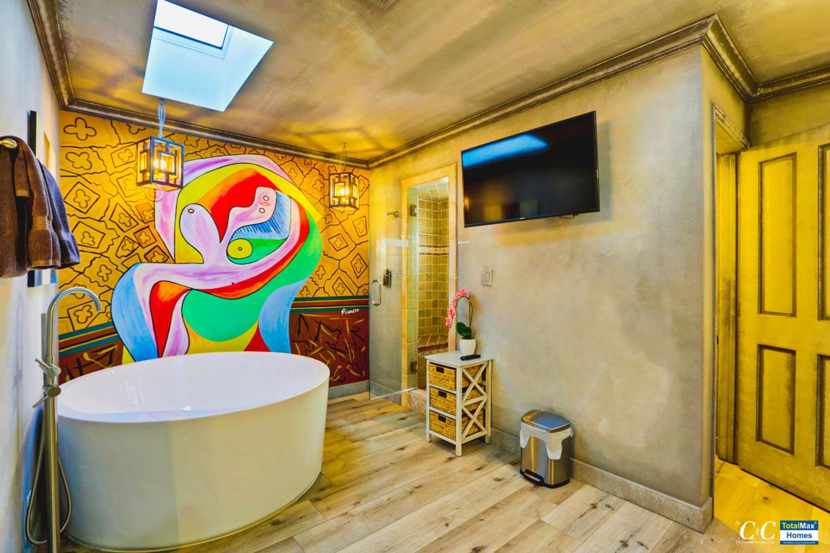 Inside, check in any of all 9 bedrooms and use any of 8 bathrooms. Each bedroom has bedsheets with an eighteen hundred thread count. There’s one large HD flat screen TV linked to cableTV and Netflix in every room. In the common areas, there are several large TV sets, too. For a game of ping pong and other games, the game room is waiting for you.
