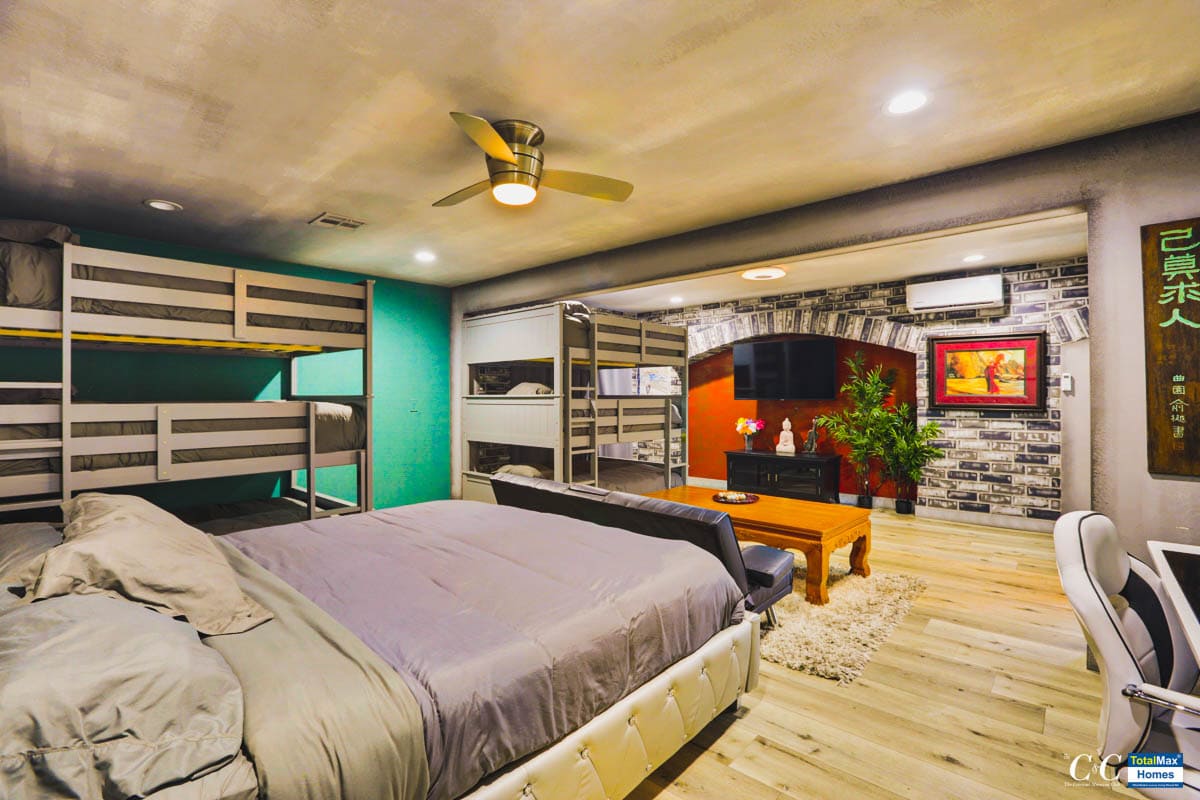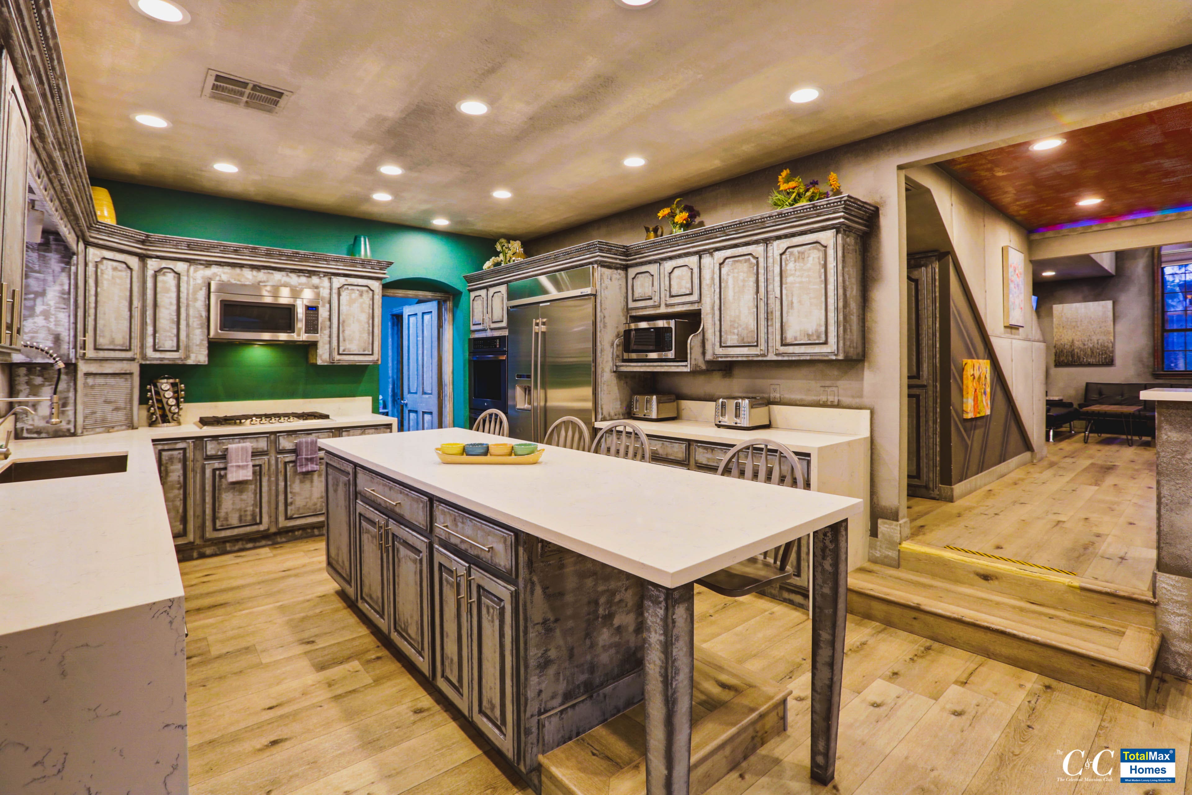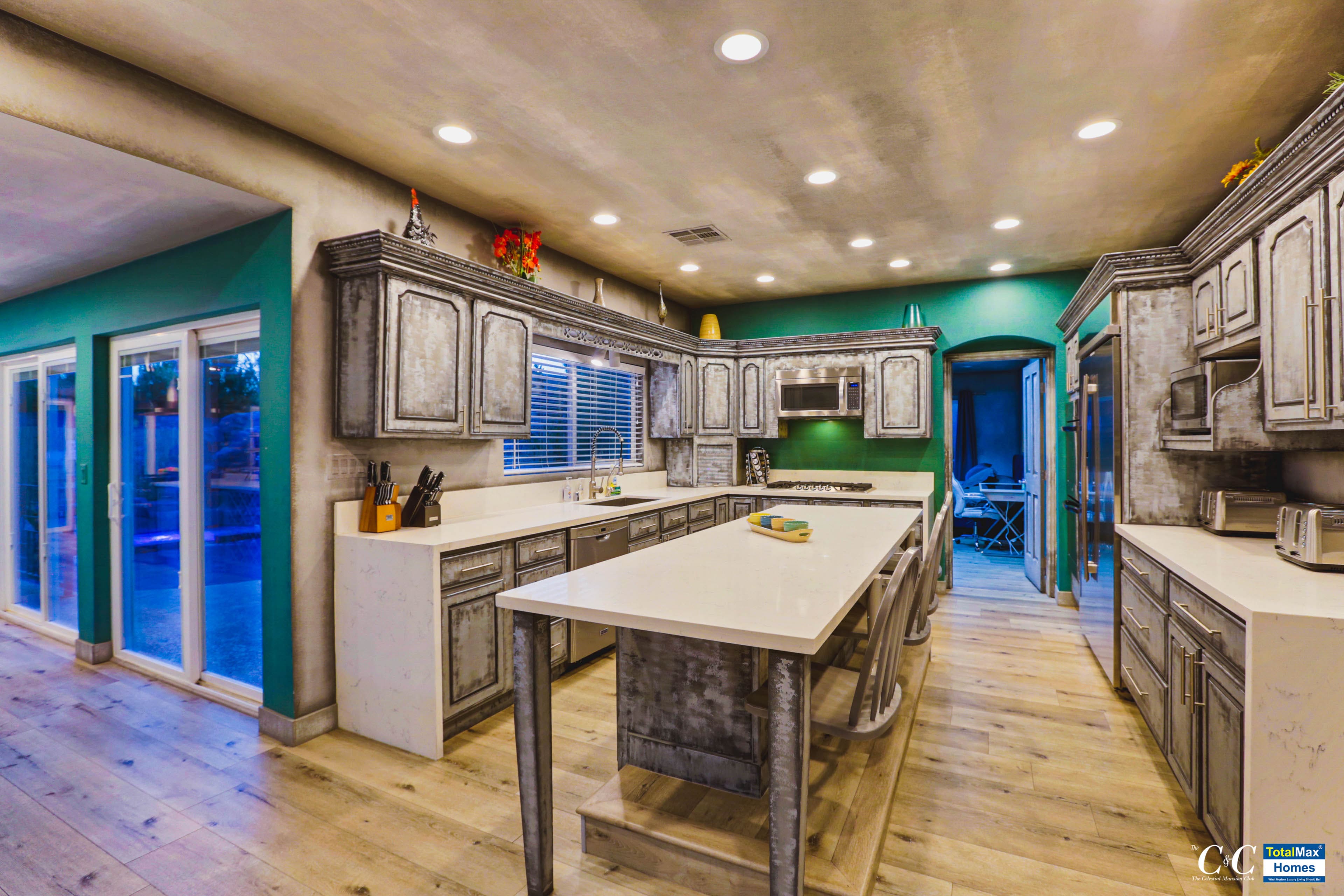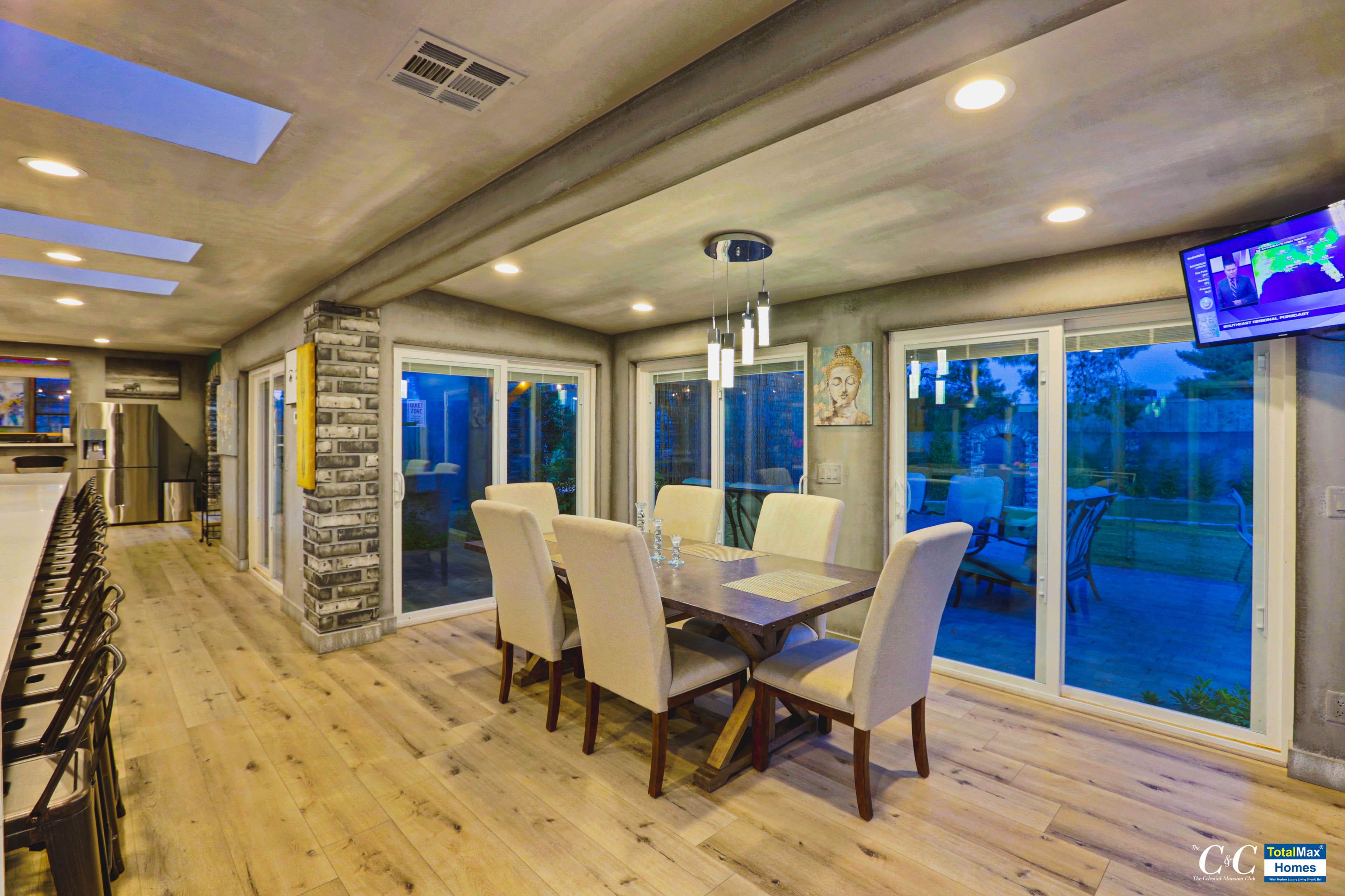 The kitchen boasts of brand new, high-end appliances: Ninja Blender, Keurig, InstaPot, electric hot water kettle, a few among the many. There are 4 ovens, 2 microwaves, a dozen stove tops inside and also multiple refrigerators, wine coolers, a double tap kegerator, ice machine and multiple sinks. If the indoor kitchen is amazing, so is the outdoor kitchen that features 5-burner BBQs, an industrial work burner, huge 20 chicken rotisserie and another 6-burner stove top.