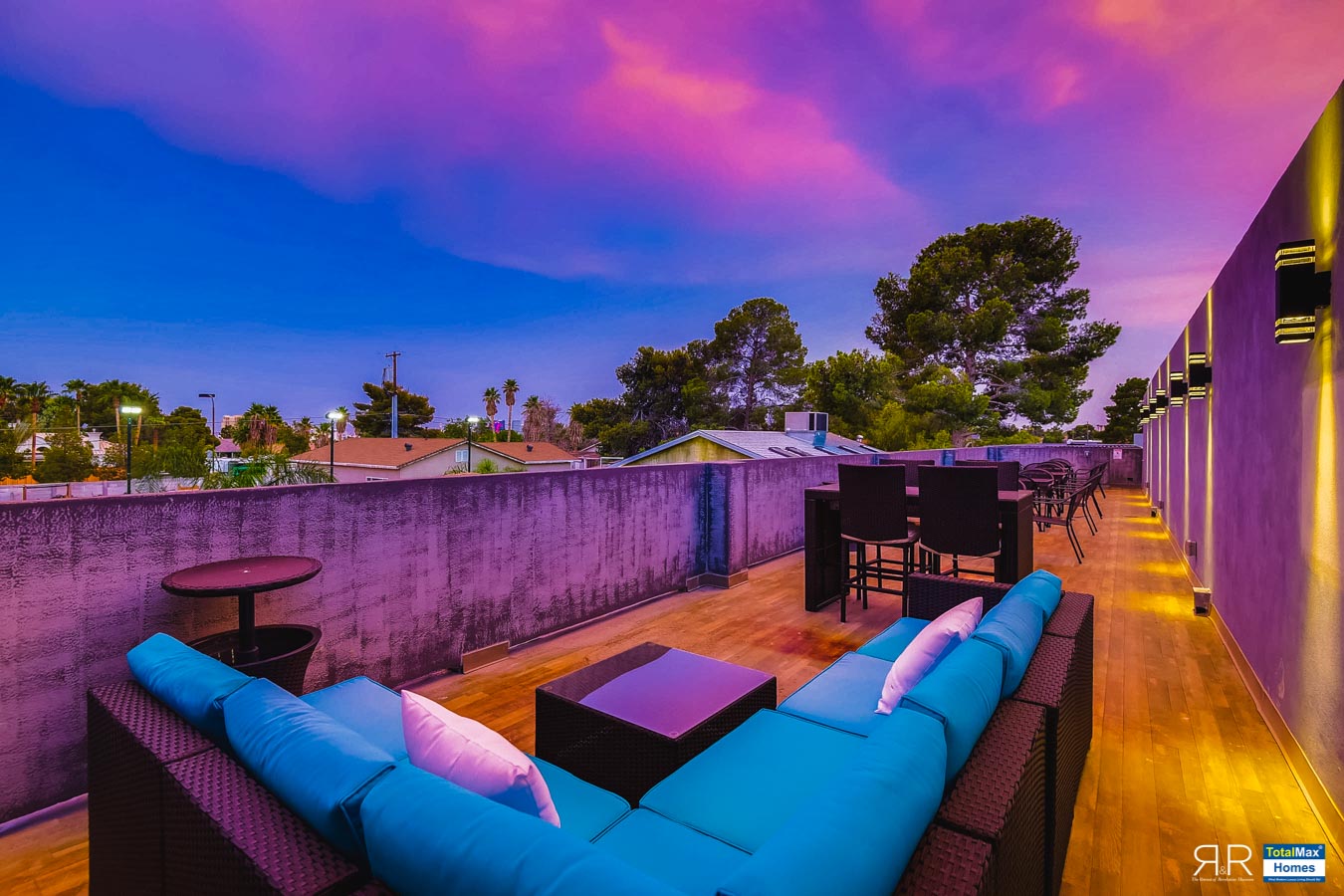 A night view of the skyline is all yours from the east side of the mansion. The balcony on the second floor gives you the fantastic city lights after sun down. You can see from Rio all the way to the stratosphere.