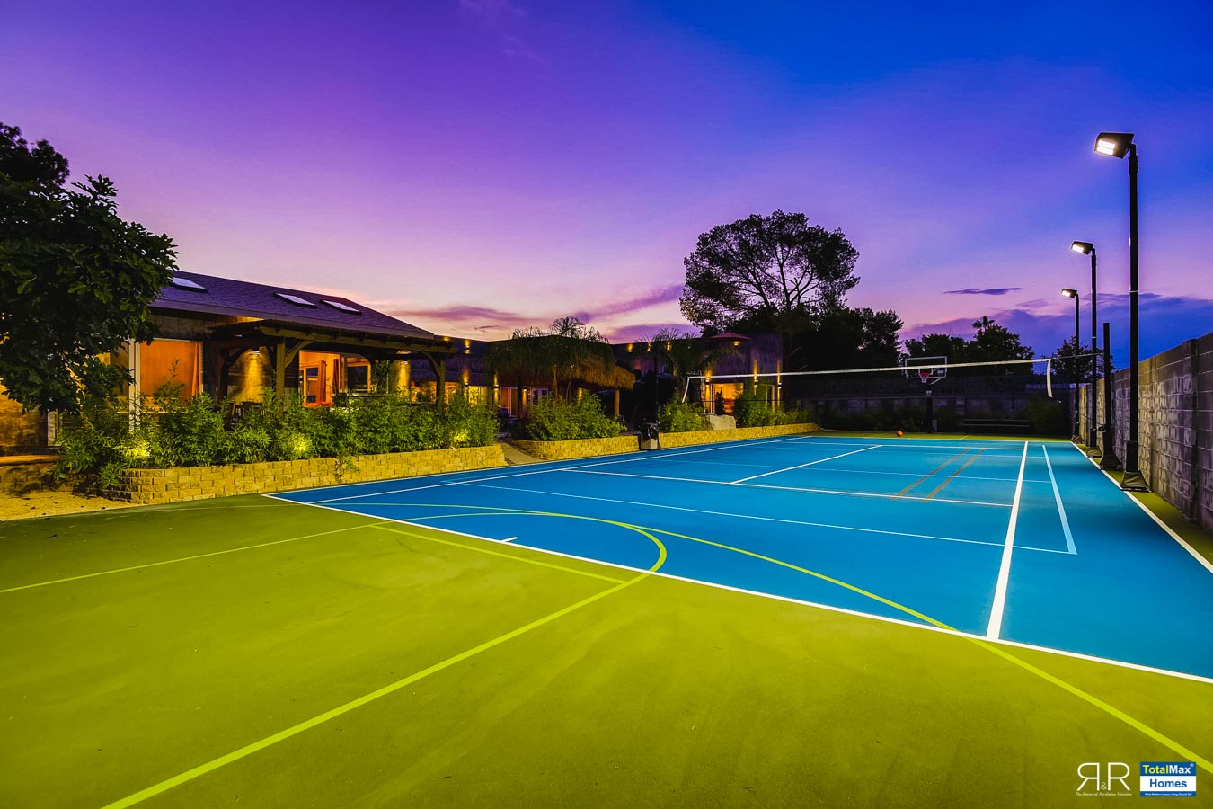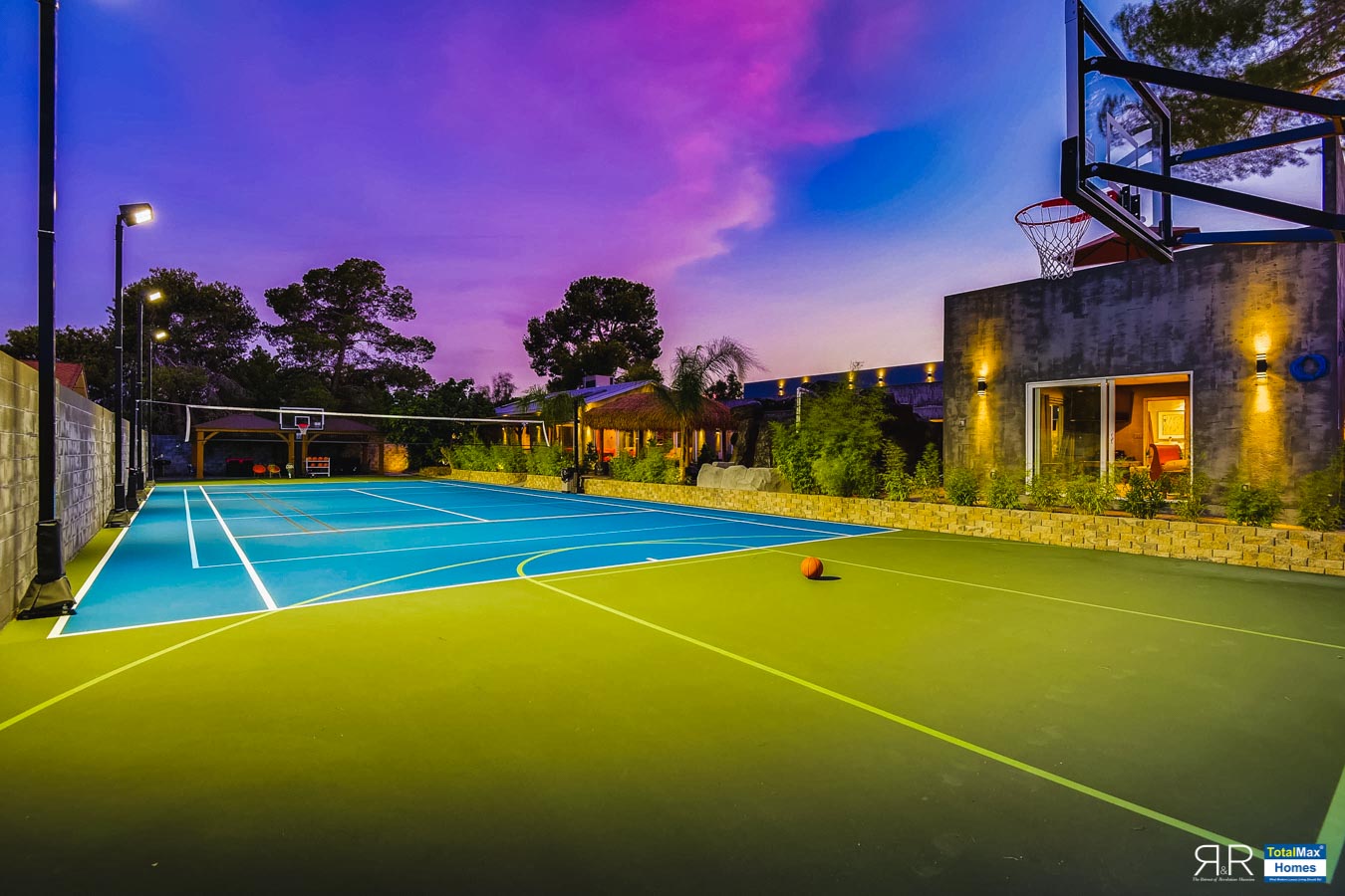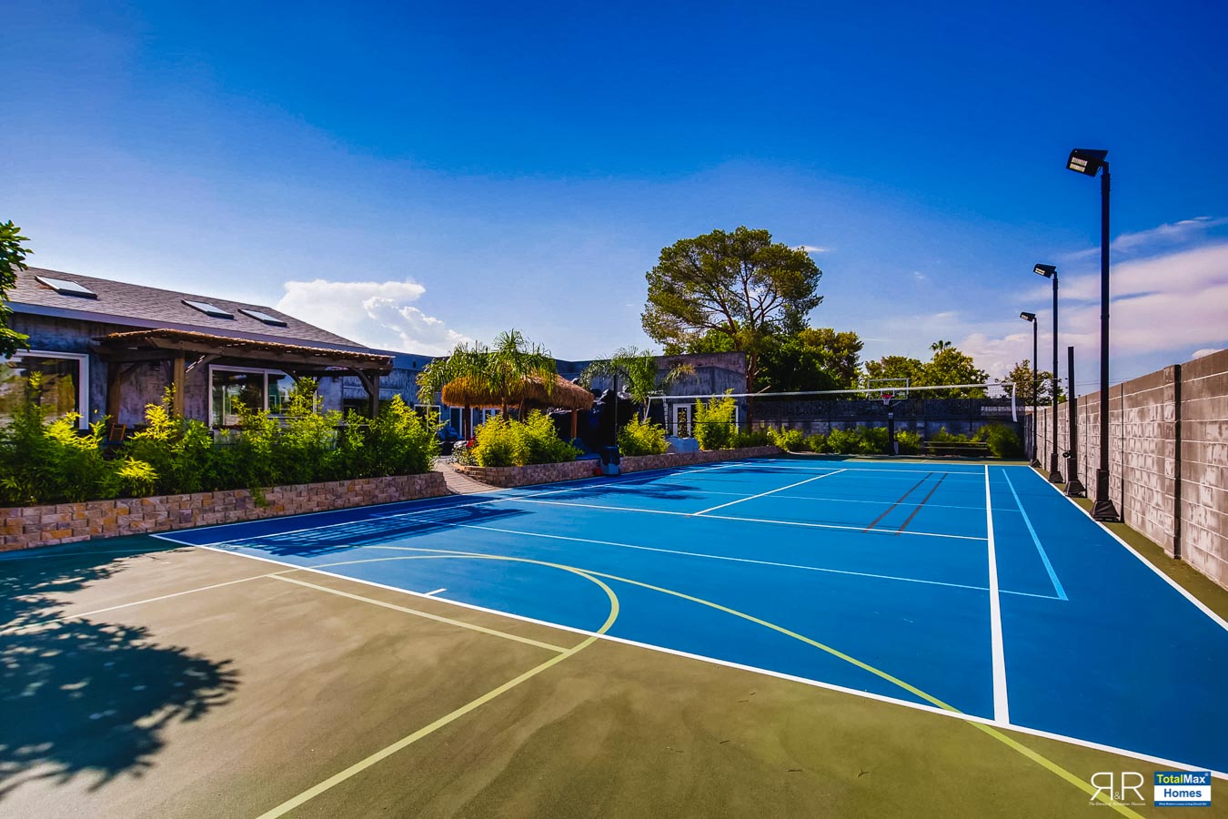 And if tennis is your game, enjoy a full singles tennis court that’s cleverly built inside the basketball court. Court lines for volleyball, badminton, and pickle ball are likewise custom-made. The large open area on the sports court can be used for large gatherings with more than 20 tables, including a second barbecue area.