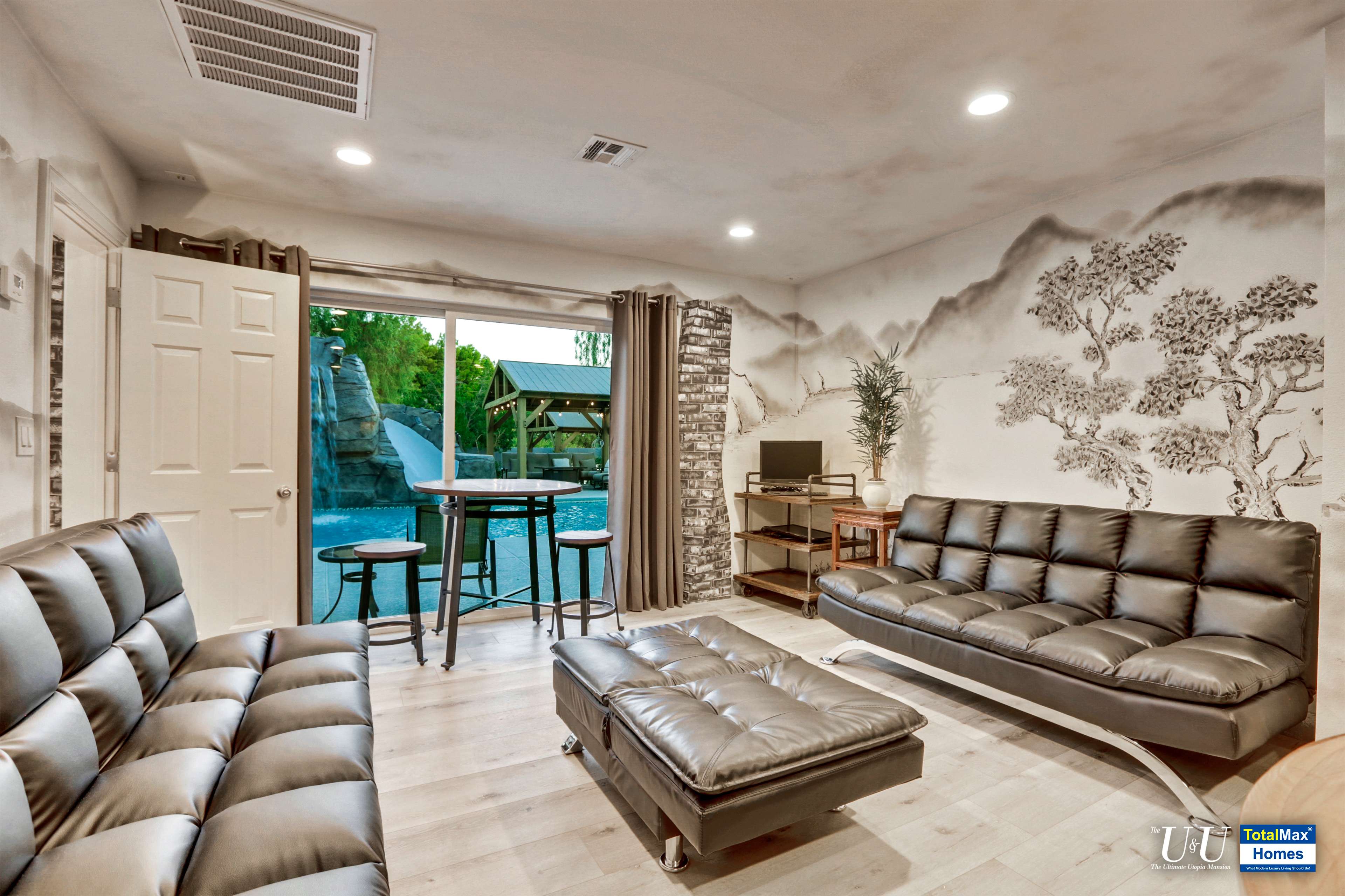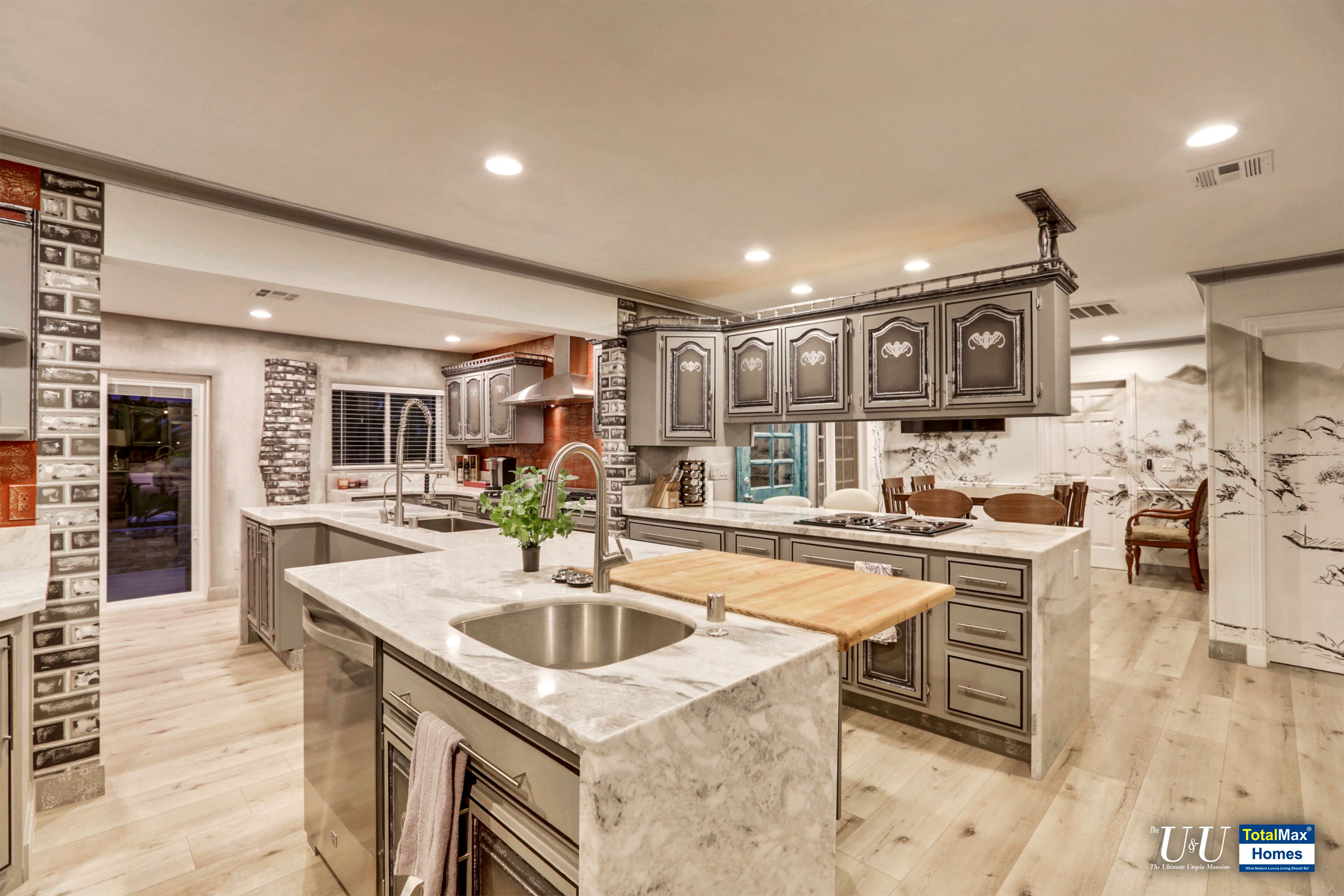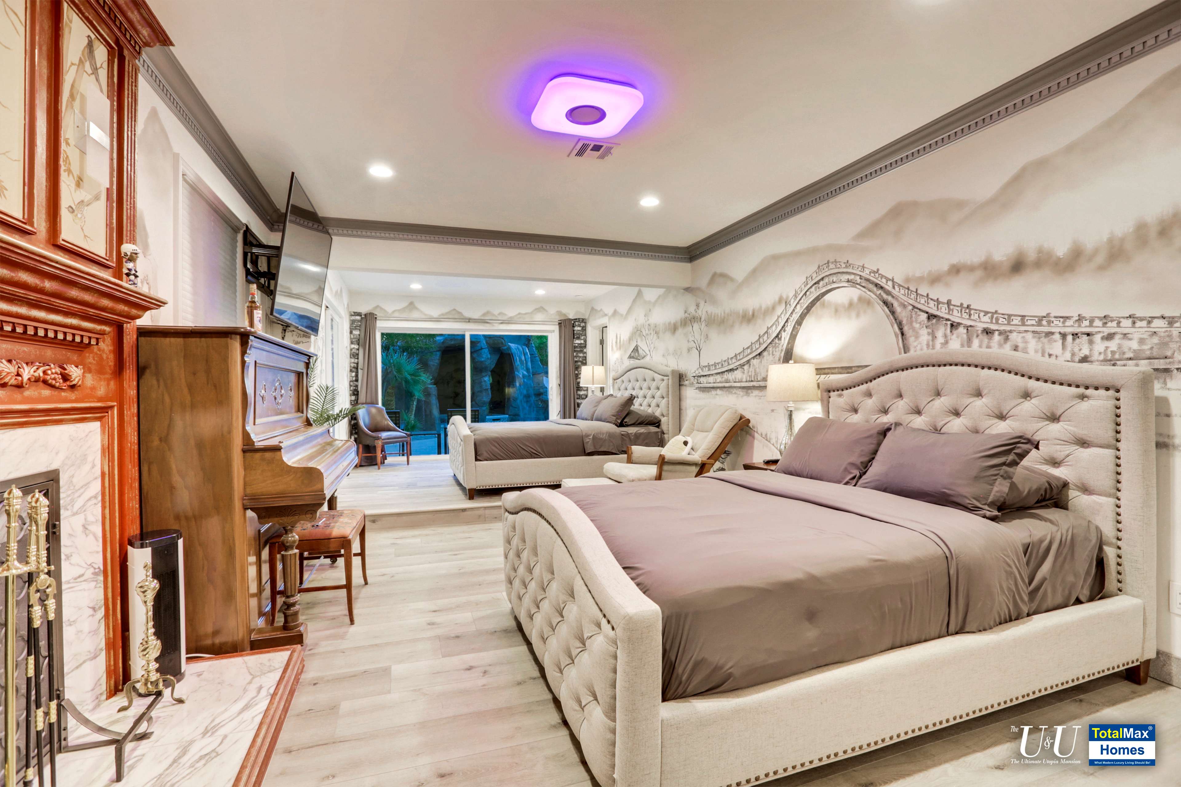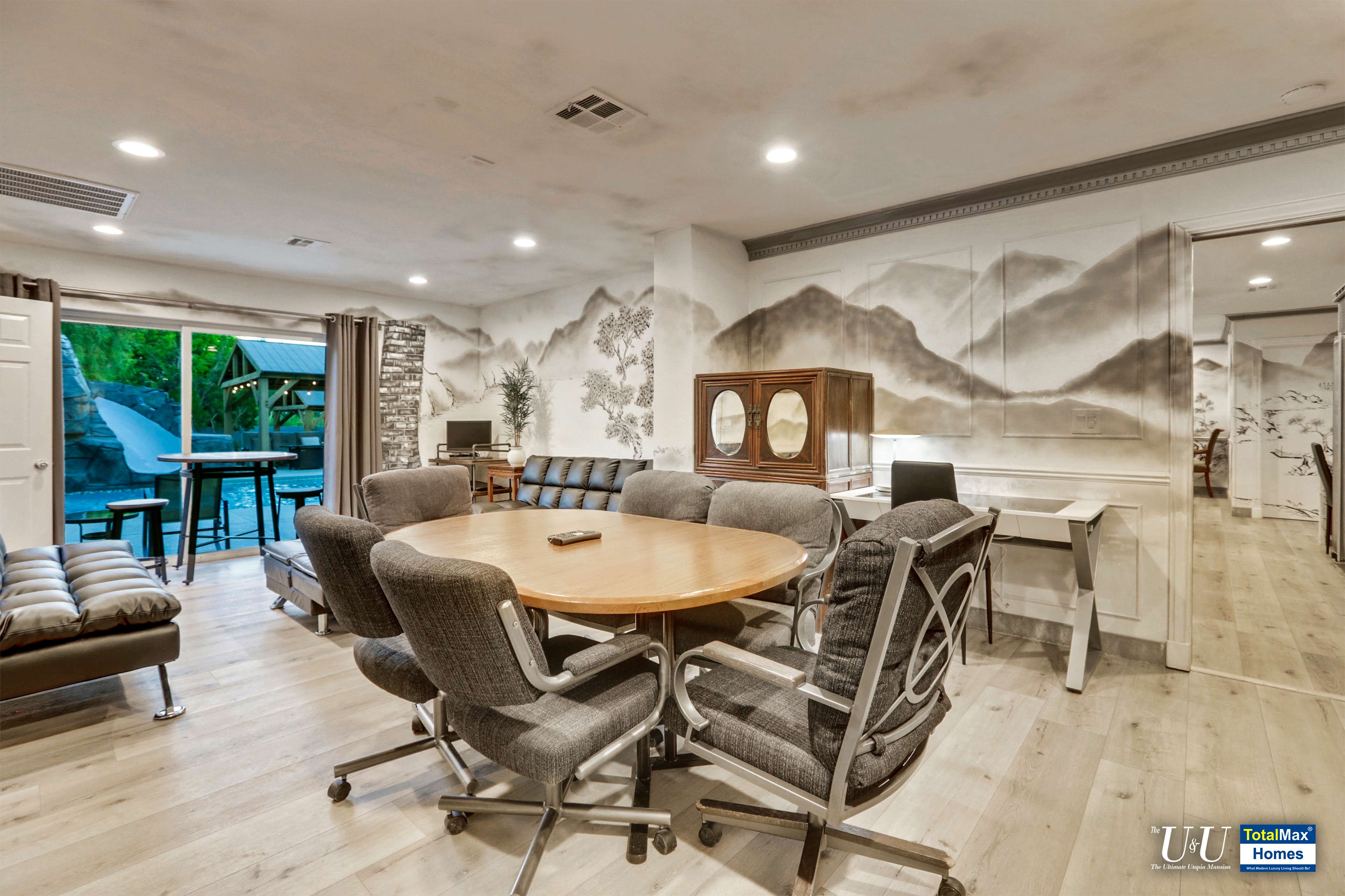 What’s it like to alight from your vehicle and arrive here, right at the foot of an awesome mural wall that stands at 8 feet tall and stretches up to 100 feet long? The wall mural depicts a Chinese treasure of “Qingming Shan He Tu” or “scenes along the river during the Qingming Festival”. Welcome to the U & U Mansion, the Ultimate Utopia Mansion. Greet your other visitors as they drive through the three 22-feet large sliding gates with a circular driveway. They’re in for a very pleasant surprise!